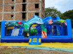 海の仲間のオブジェ&プリントがたくさんの、賑やかなコンボタイプのエア遊具です。