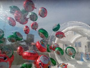 ゴム製のバルーンは静電気の影響で割れやすく、運営中に破損する恐れがあります。
