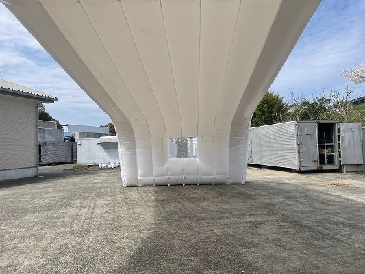 エアー式遮光テントは、17m×10mの広大なエリア(2スパン連結時)を真夏の太陽光による日差しや雨から守ることが出来る大型テントです。