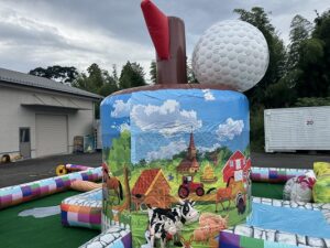 ツールの中心には大きなゴルフボール、トラクターやキャディさんの可愛らしいオブジェがあります。