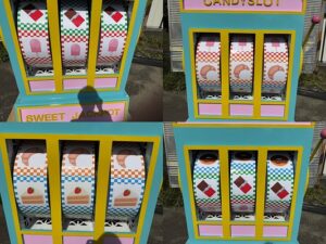 キャンディやクッキー、ケーキといったスイーツやクロワッサンなどの可愛らしい絵柄のスロットマシーンです。