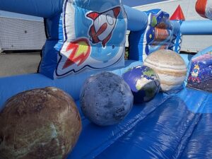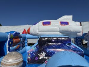 遊具内には火星や月、土星などをイメージとしたオブジェがあり、宇宙船の下にはスライダーがあります。