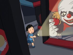 迷路の中には、不気味なピエロのイラストやおばけのオブジェが設置されており、進むたびにワクワク感を楽しめます。