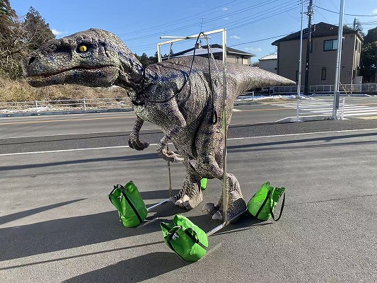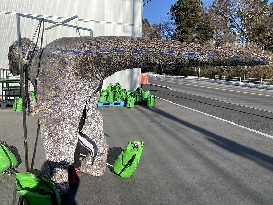 安全な運営のため、最低2人(恐竜の着用者1人・誘導役1人)は確保いただきますようお願いいたします。