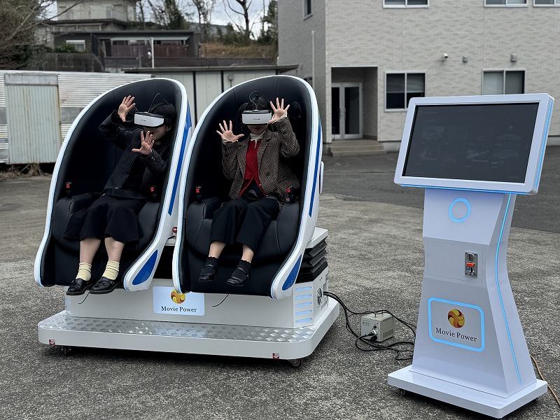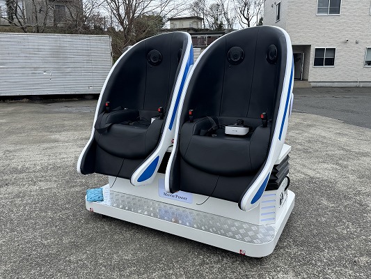 近未来を思わせるシャーク型のチェアで、同時に2名がVRアトラクションを体験することができます。