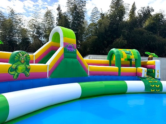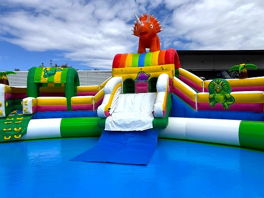 複数のスライダーと広大なプールエリアを兼ね備え、圧倒的な存在感でイベント会場の目玉となります。
