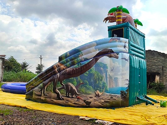 巨大スライダーと恐竜のオブジェは、遠くからでも一目でわかる圧倒的なアイキャッチに。