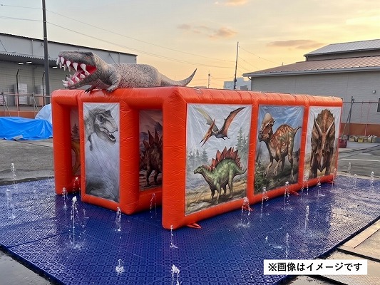 「恐竜ミニ迷路」などの既存エアー遊具と組み合わせることで、スリルと涼しさが融合した新感覚のアトラクション「噴水迷路」が完成します。