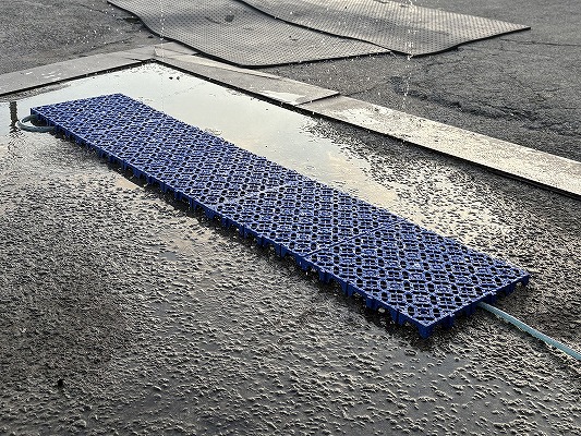さらに、弊社の「恐竜ミニ迷路」などのエアー遊具の下に敷くことで、いつどこから水が吹き出すかわからないスリル満点の「噴水迷路」へと変化し、他にはない目玉企画としてイベント会場を大いに盛り上げます。