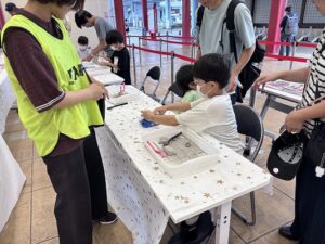 「大きい化石が置いてあって楽しそう」「何かイベントをやっているのかな」と立ち止まるお客様も多くいらっしゃいました。