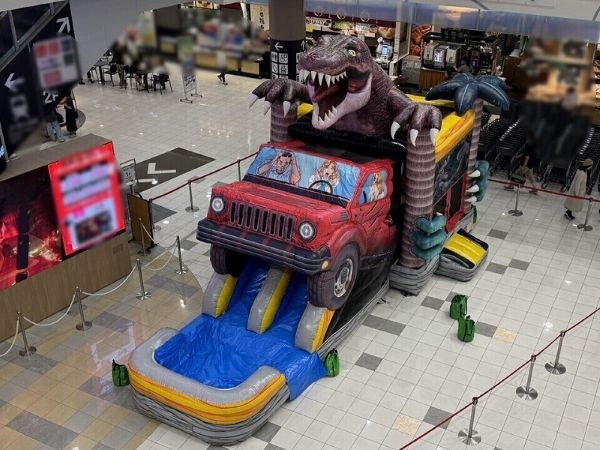 エスケープダイナソーは、巨大な恐竜から逃げている気分を体験できる迫力満点のエアスライダーです。