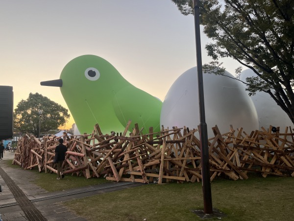 そのシンボルとなる「巨大インスタレーション(NESTOPIA)」として、ワン・ステップでオリジナルのメジロバルーンを製作いたしました。