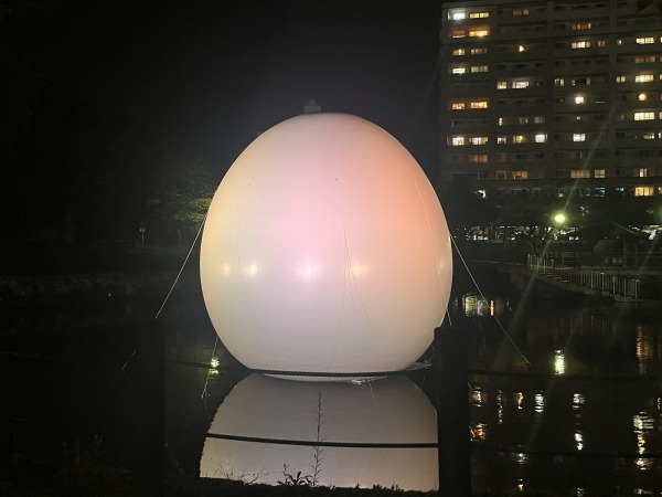 さらに、中央公園の池に浮かべた「FLOATING EGG(高さ8m)」も水面に光が反射し、昼間とは全く違うロマンチックな空間を演出していました。
