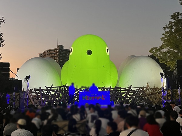 駅からもバッチリ見える圧倒的なスケール感で、イベントのシンボルとして会場をすっぽりと見守るような迫力があります。