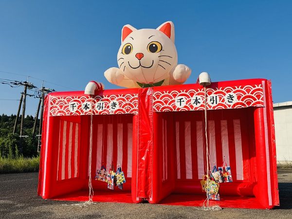 巨大千本引き招き猫ver.は2つのブースを同時に運営できるため、多くの来場者が参加しやすい高回転型の抽選アイテムです。