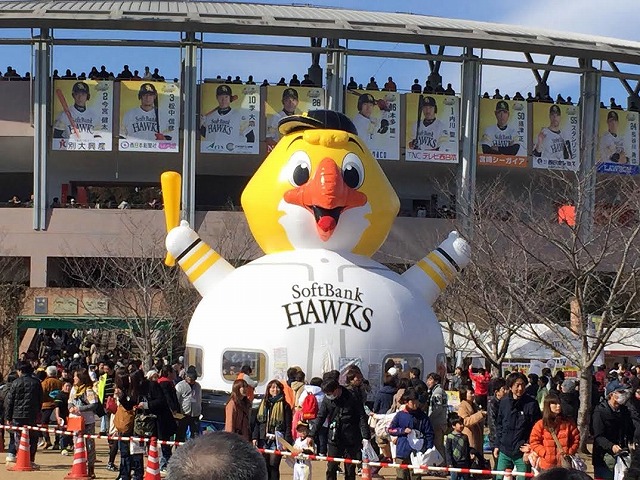 ソフトバンクホークスのマスコットキャラクターをドーム型で製作した事例では、高い再現性と存在感が評価されました。