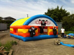 その愛らしい姿をそのまま再現した大型エア遊具が「くまモンふわふわ」です。