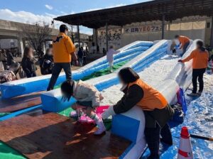 今回のイベントでは、当社のスノーマシンスノーマシン用滑り台をご利用いただきました。