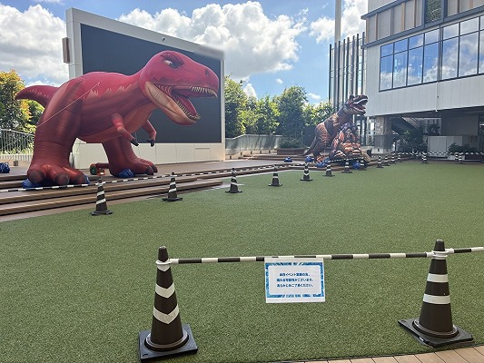 平面的な広場に巨大な恐竜が出現するだけで、空間が一気に非日常感あふれる雰囲気に!