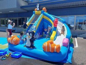 空気で膨らませるタイプの遊具は比較的設置が簡単で、撤去や保管もしやすいという運営上の利点があります。