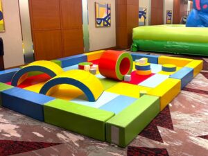 カラフルなウレタンのマットやスティックで小さいお子様も楽しめるキッズコーナーを設置できます。