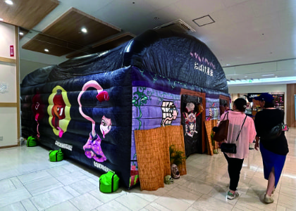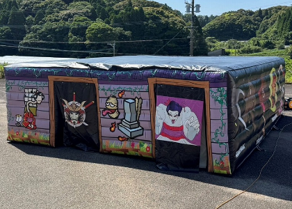 エアーで立ち上げるテント型のお化け屋敷です。中に設置するお化けはセンサー式のため、臨場感は本格派。短時間で設営できるので、週末限定イベントや1日だけの特別開催に最適です。