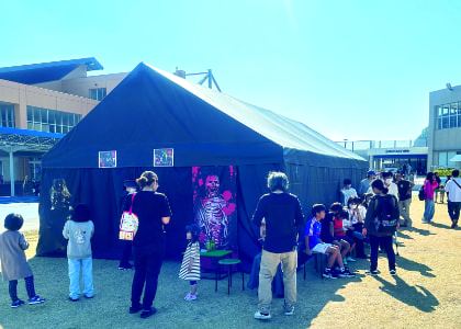 ボートレース場の通路にて、テント式お化け屋敷を運営しました。 エアテント式よりお化け屋敷のコースが長く、ファミリー層から20代~30代のグループまで幅広い年代の集客に繋がりました。 1日平均400名ほどのお客様にご参加いただきました。